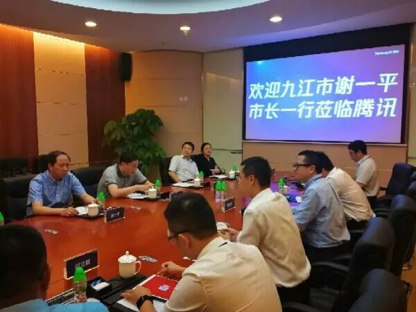 (鑫訊)剛剛履新一周的九江市市長謝一平先生率領(lǐng)九江市副市長羅文江、市政協(xié)副主席徐紅梅以及發(fā)改委、工信委、信息辦、駐深辦、經(jīng)開區(qū)、商務(wù)局、新聞辦等多個(gè)部門的負(fù)責(zé)人在深圳市匯鑫科技股份有限公司董事長段鑫的陪同下于5月15日上午來到深圳騰訊公司就大數(shù)據(jù)、云計(jì)算中心、互聯(lián)網(wǎng)+及智慧城市等項(xiàng)目合作進(jìn)行了深入洽談。